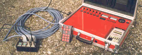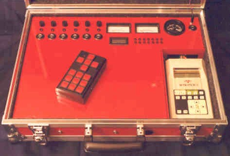 Der Skysensor 3S ist von mir ein bisschen modifiziert worden und wird jetzt mit einer Funkfernbedienung bequem und handlich bedient. Somit verbleibt der Skysensor wärend meiner Exkursionen ständig im Koffer. Die Verbindung zu den Motoren und der Taukappe, etc wird mit einer mehradrigen Steuerleitung hergestellt. Zusätzlich ist in dem Koffer noch ein Amperemeter, ein Voltmeter, eine Uhr und ein Thermometer eingebaut.. Genauso wie im Okularkoffer ist in dem Deckel eine Beleuchtung mit LED’s eingesetzt. Die verwendeten Stecker
